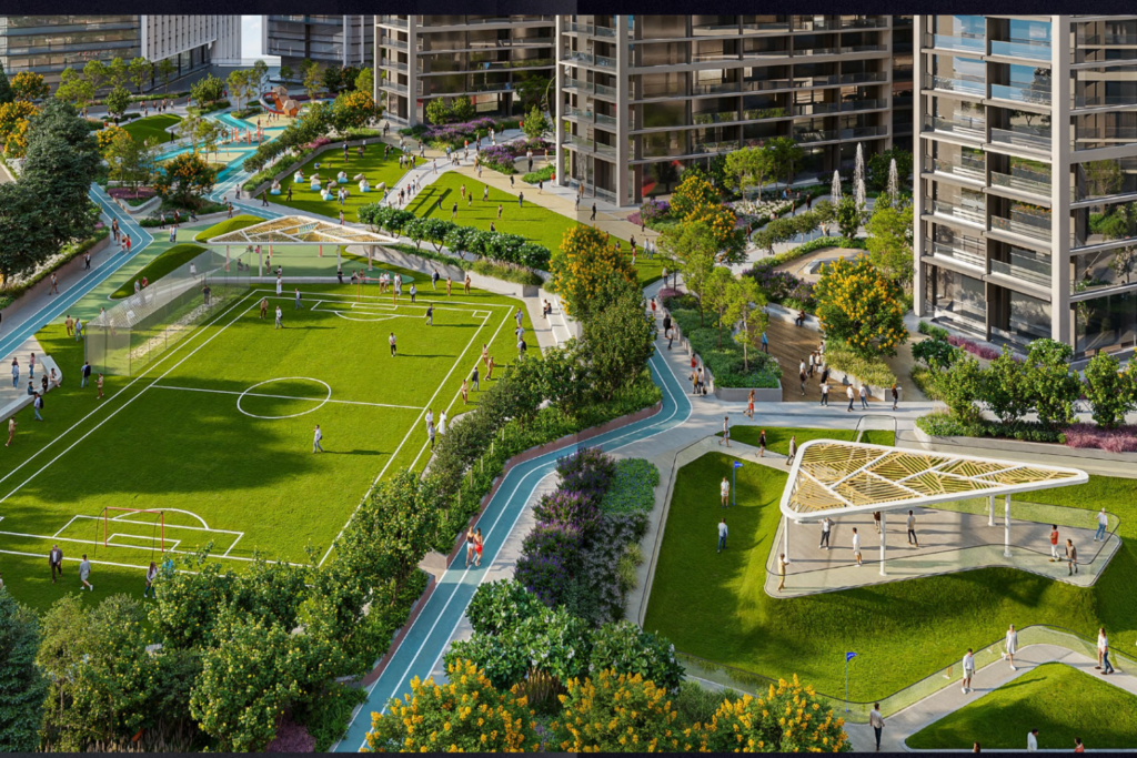 Inspired by traditional Arabian design and modern urban principles, ParkFive is built around pedestrian-friendly sikkas, retail boulevards, and community-centric outdoor spaces. From rooftop sports courts to shaded play zones and Zen gardens, every detail has been designed for comfort, connection, and well-being.
